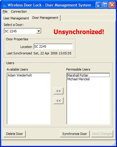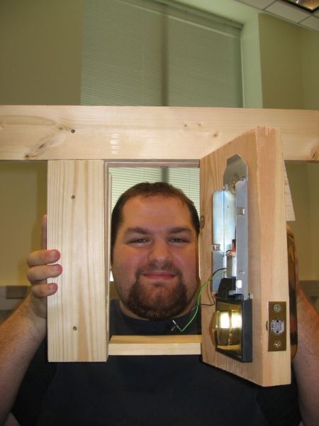 Owen and Jim have exerted much effort with power tools in the embedded lab constructing a demo-door for us to use. The doorlock has been installed on the door, but we are still lacking the PCB board to install.